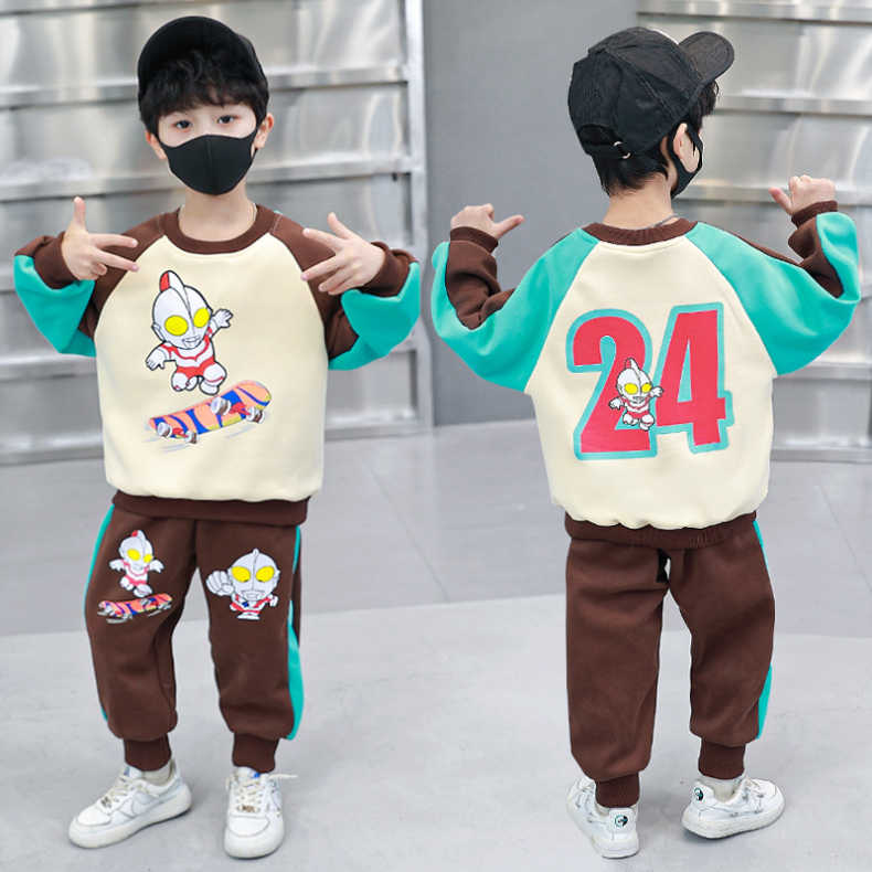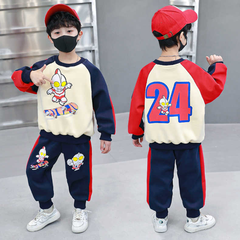 男童 加绒卫衣 套装 秋冬 2023 新款 宝宝 春装 连帽 儿童 冬装 奥特曼 衣服 潮