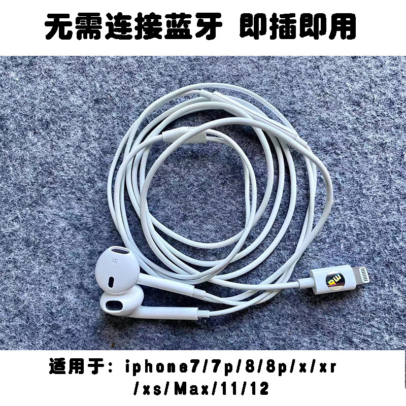 适用原装苹果X拆机7plus/8p/xs/max/XR/11pro/6s扁头有线耳机正品