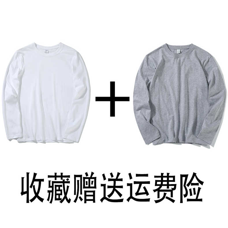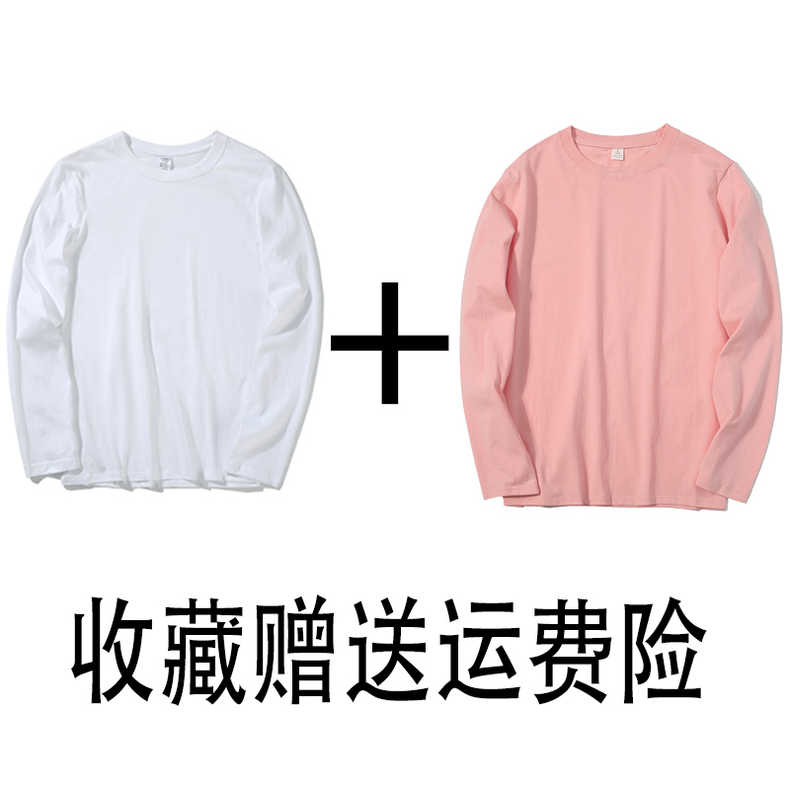 (买一送一)210g新疆棉重磅纯棉长袖T恤宽松男女打底衫正肩上衣