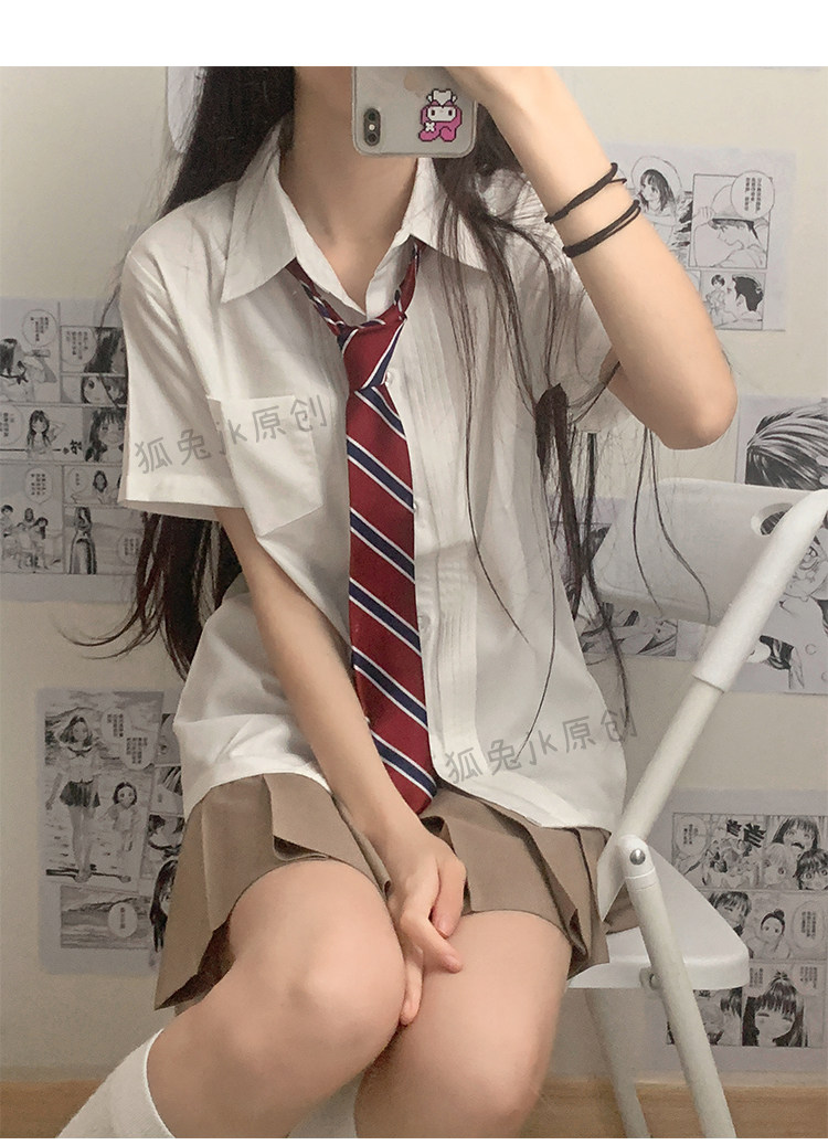 狐兔 jk 原创 长袖 风琴 褶 纯色 刺绣 衬衫 女 秋冬 日系 学院 风 制服 奶 白衬衣