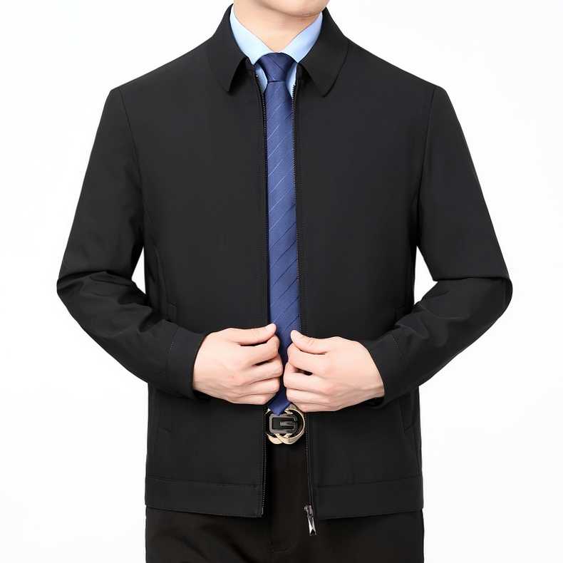 雅戈尔 桑蚕丝 夹克 男士 翻领 秋季 中老年 商务 休闲 宽松 爸爸 装 外套 茄克