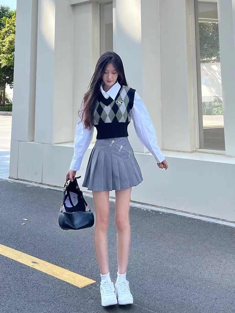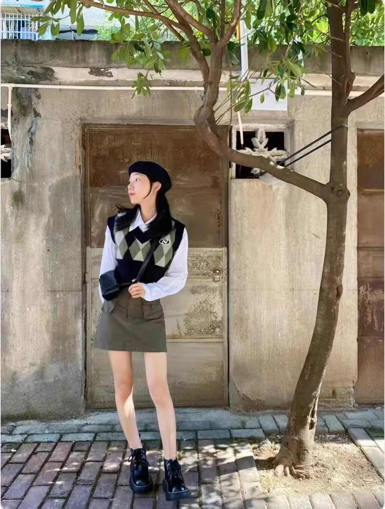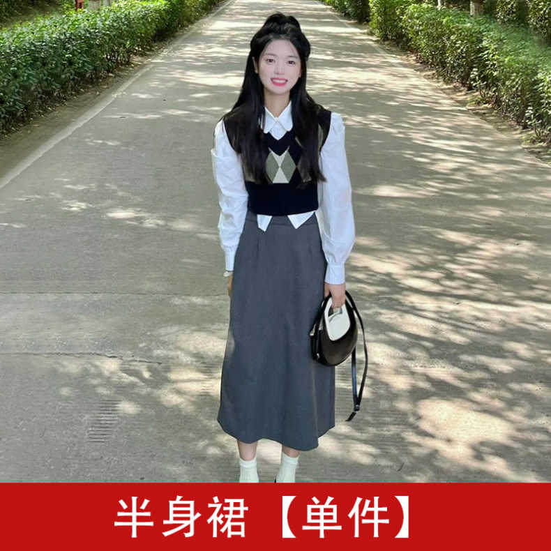 春季 学院 风 连衣裙 子 小个子 法式 长裙 奶系 穿 搭 套装 2023 春装 新款 女装