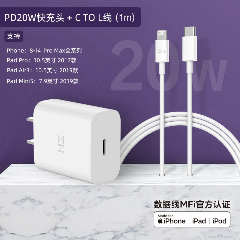 ZMI紫米PD充电器20W快充手机适用于苹果iPhone14Pro MAX/13/12/11/Min