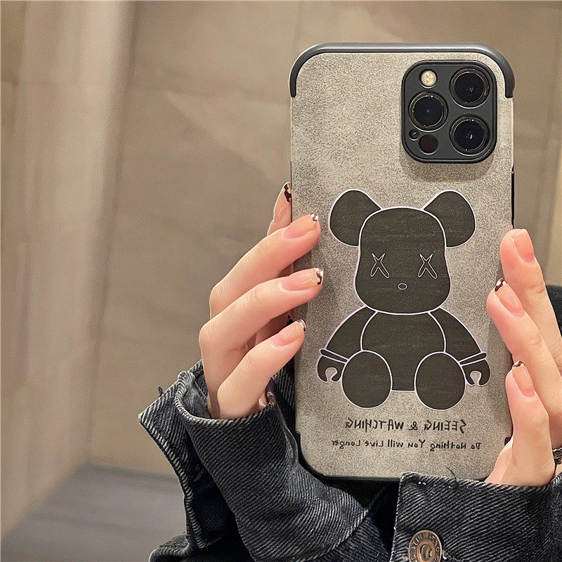 磨砂耐脏小羊皮适用苹果13手机壳卡通情侣潮牌熊14max新款iphone14promax软硅胶13p
