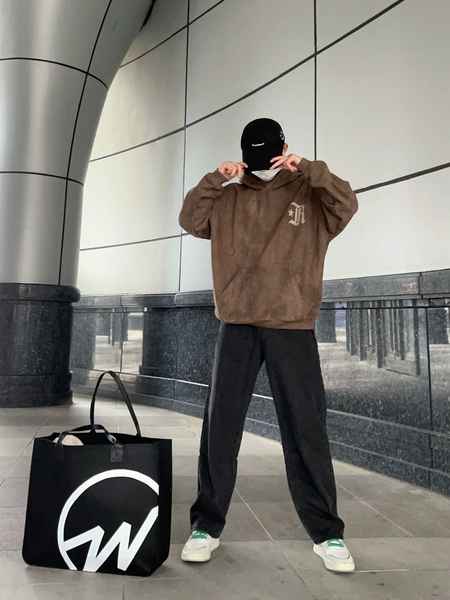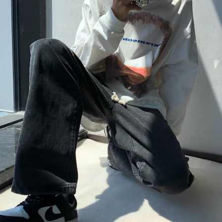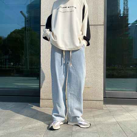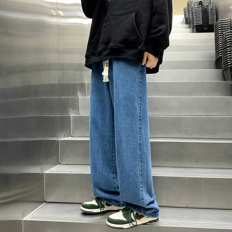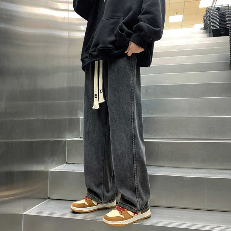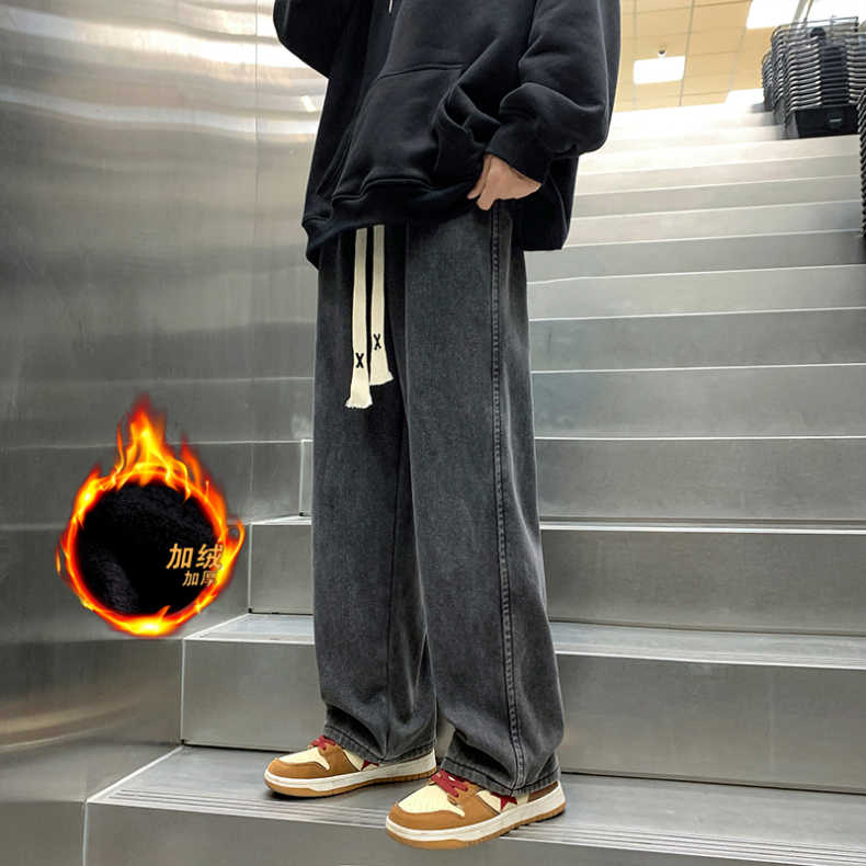 直筒牛仔裤男款春秋潮牌宽松美式高街阔腿裤冬季加绒休闲长裤子男