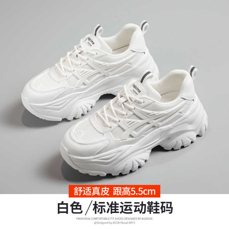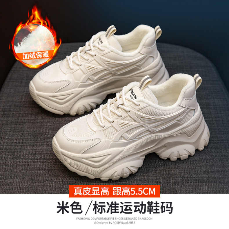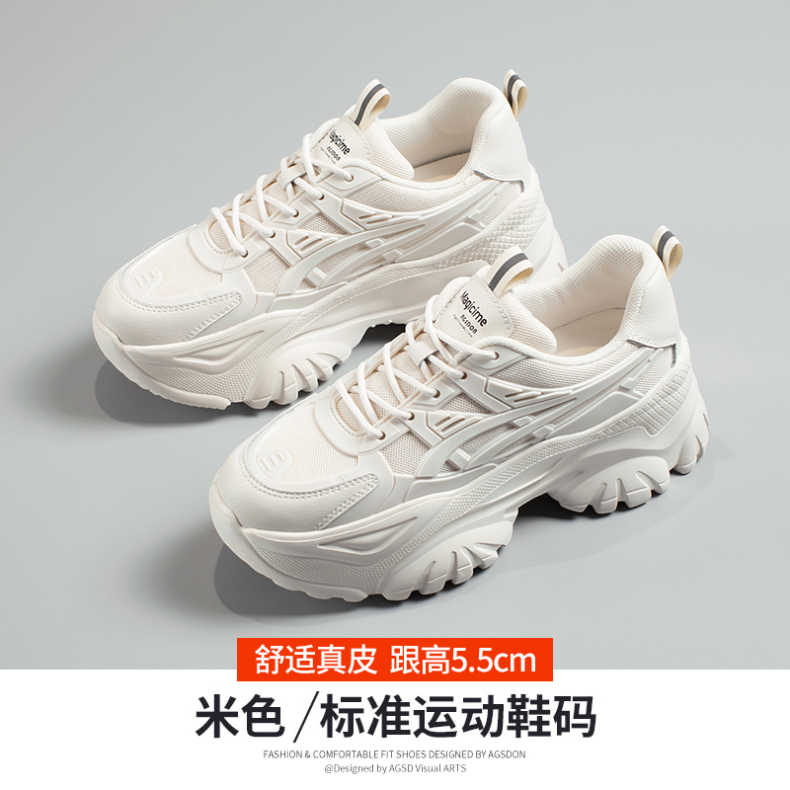 奥古狮登真皮老爹鞋女2022秋冬新款厚底百搭加绒女鞋运动鞋ins潮