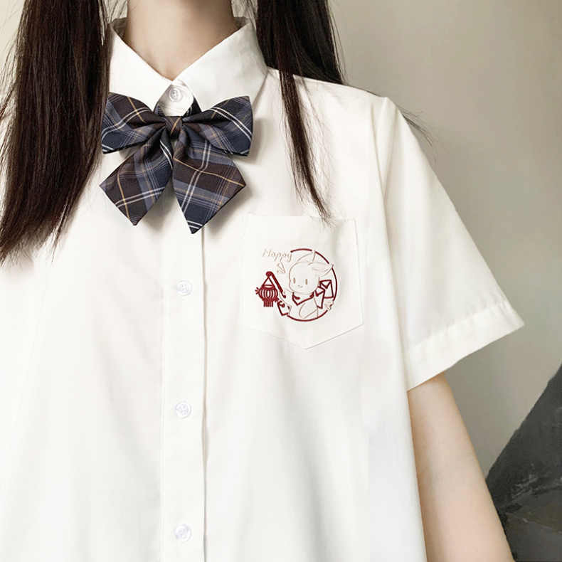 新年 兔 jk 制服 长袖 加绒 衬衫 基础 内 搭 白色 上衣 日系 学院 风 衬衣 大码 女