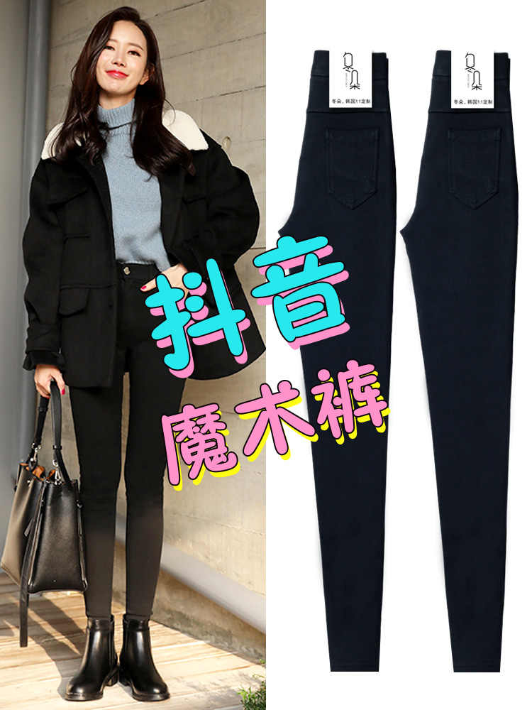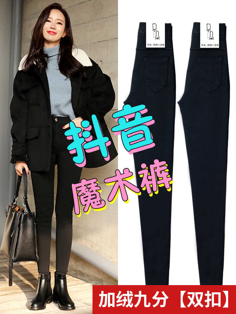 魔术 黑色 打 底裤 女裤 外穿 春秋 冬加绒 小脚 黑裤 2022 新款 紧身 铅笔 高腰