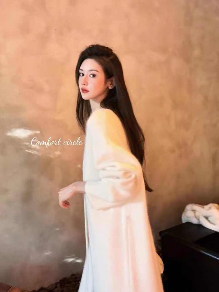 法式 针织 连衣裙 子女 秋冬 配 大衣 内 搭 春装 2023 年 新款 打底 长款 毛 衣裙