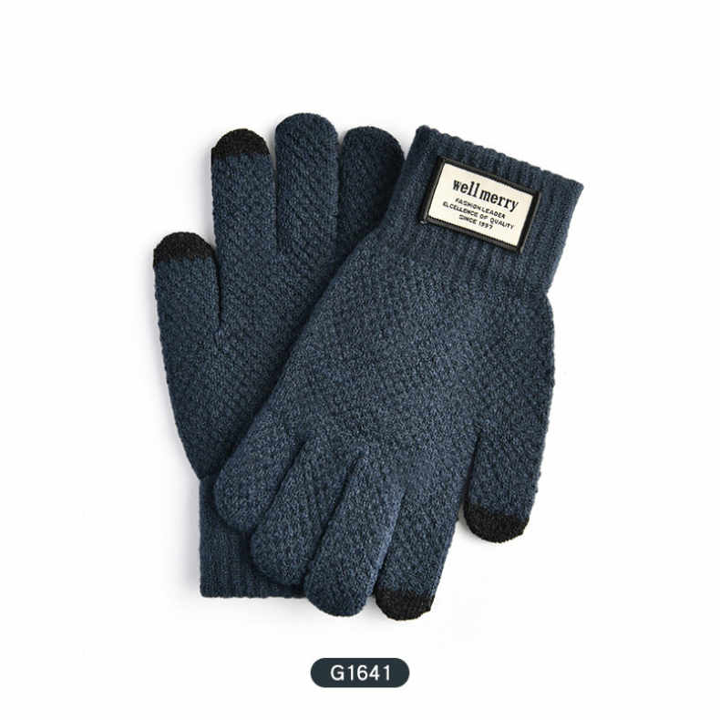 南极人冬天男士毛线手套秋冬季针织加厚加绒触屏骑行防寒学生保暖
