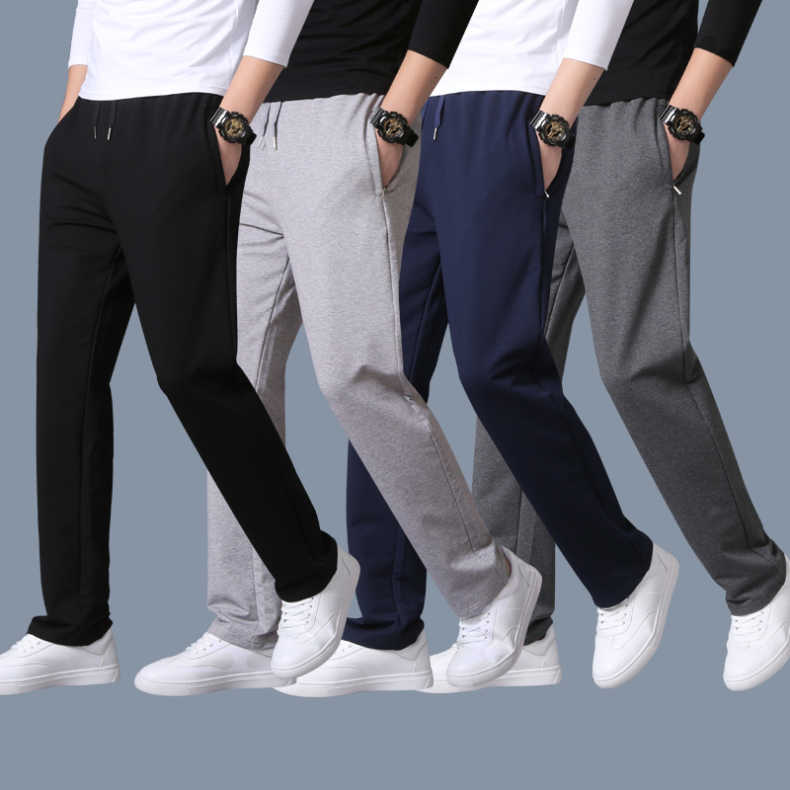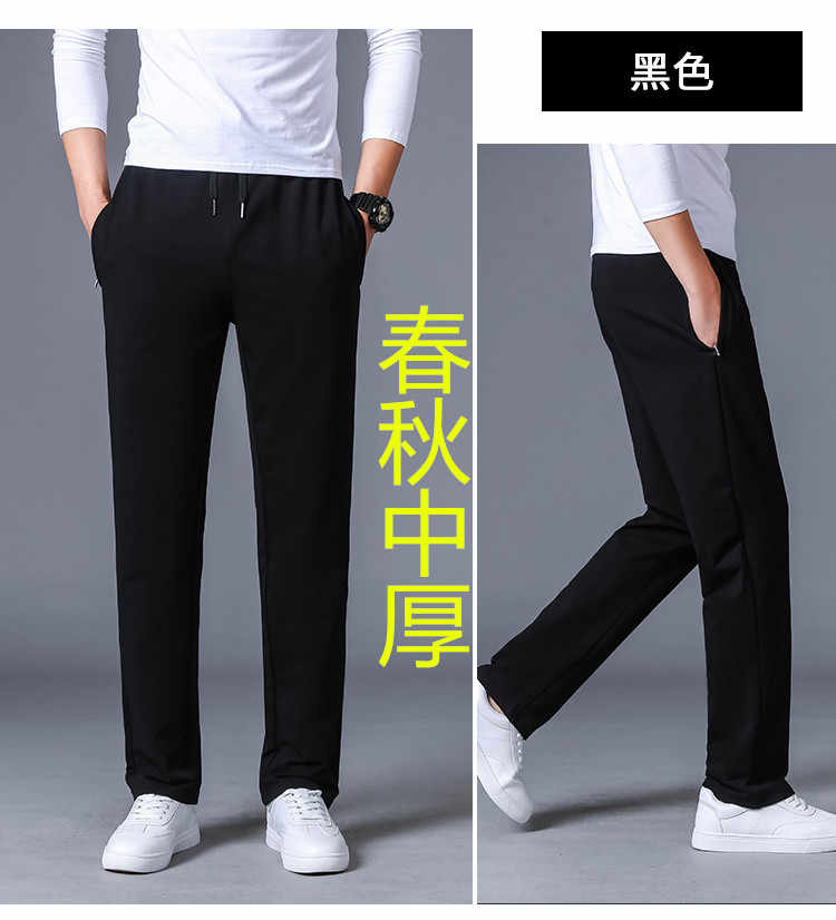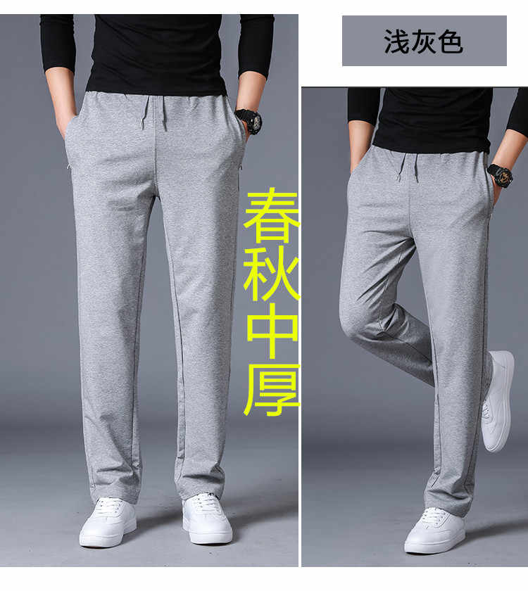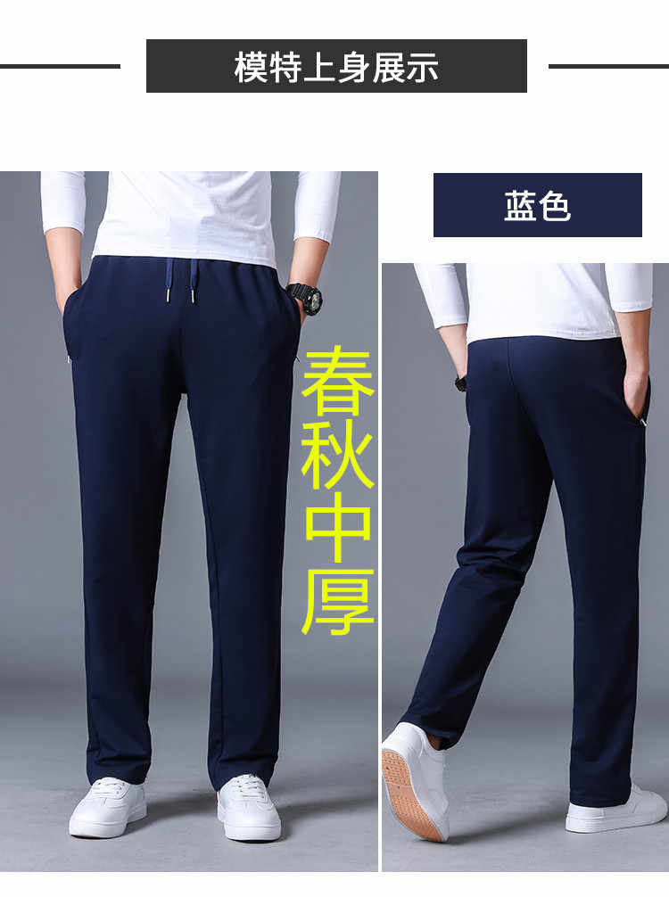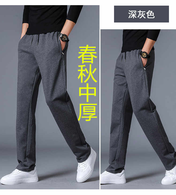 春秋季运动裤男纯棉休闲裤直筒宽松长裤大码薄款针织卫裤跑步裤子