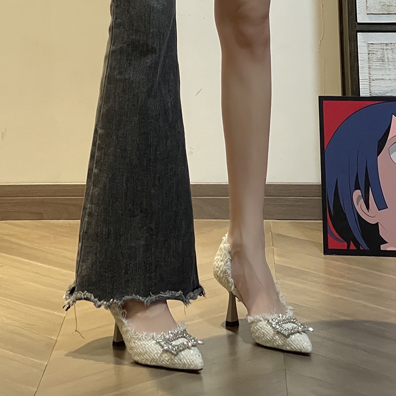 时尚部落白月光尖头高跟鞋少女细跟2023年春秋季新款法式水钻单鞋