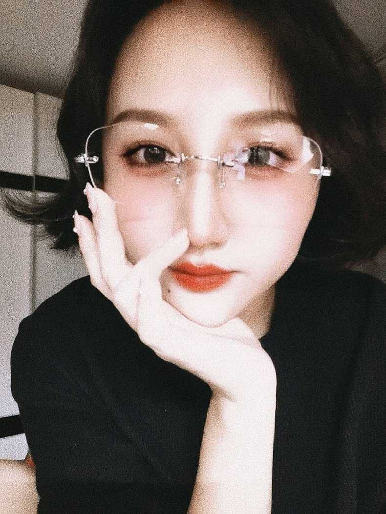 纯欲jennie无框眼镜女近视变色方形金丝小框金边简约无边框眼镜框