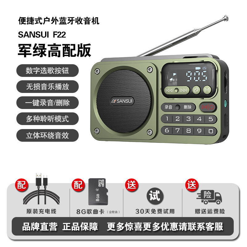 山水 收音机 老人 专用 老年人 便携 一体 随身听 播放器 充电 2022 新款 高端