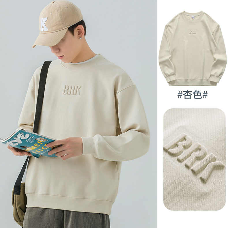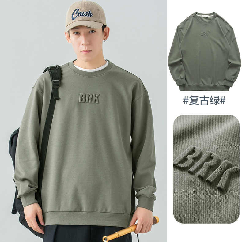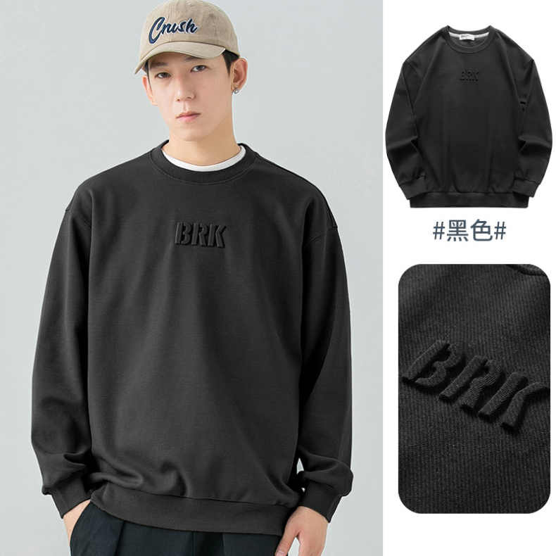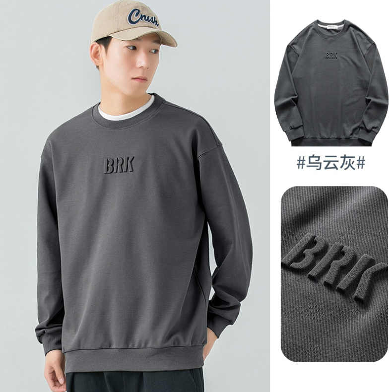 WOODSOON 冬季 加绒卫衣 男潮 情侣 潮牌 春秋 休闲 宽松 圆领 T恤 男士 上衣