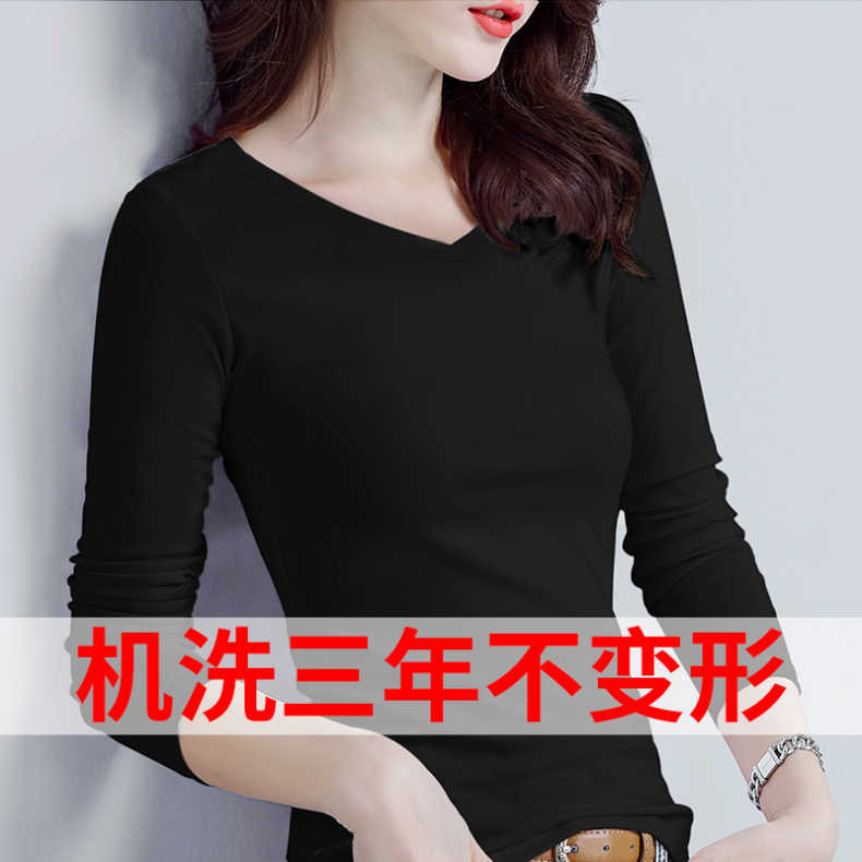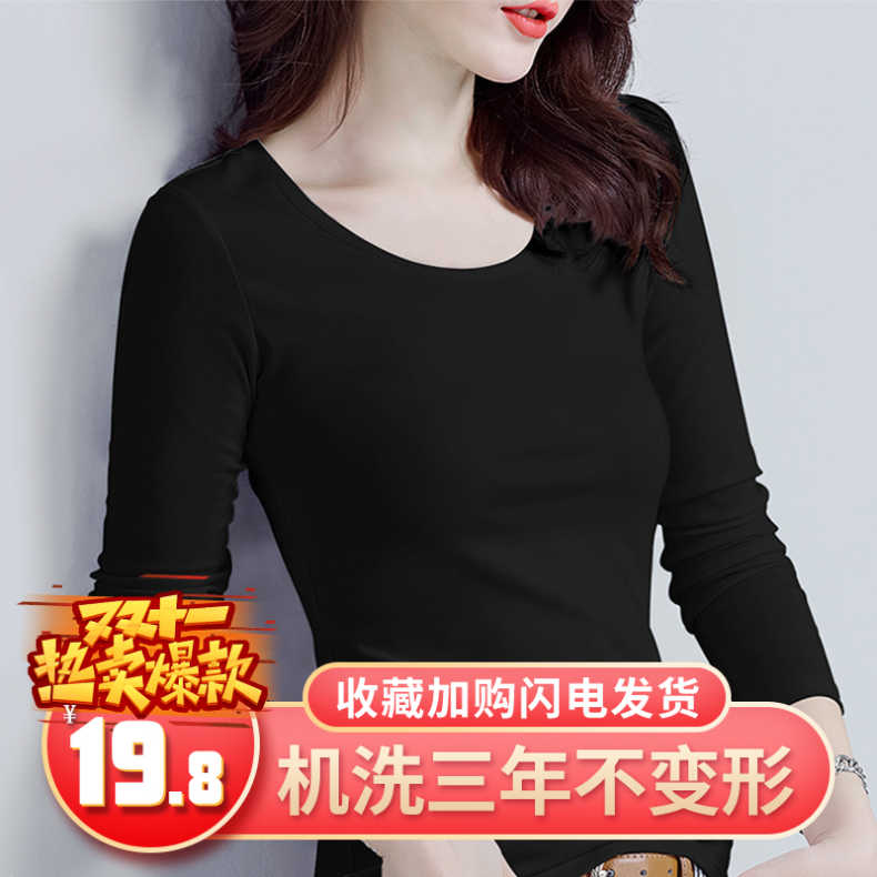 纯棉 黑色 打底 衫 女 长袖 薄款 T恤 2022 秋冬 内 搭 秋衣 加绒 加厚 保暖 上衣