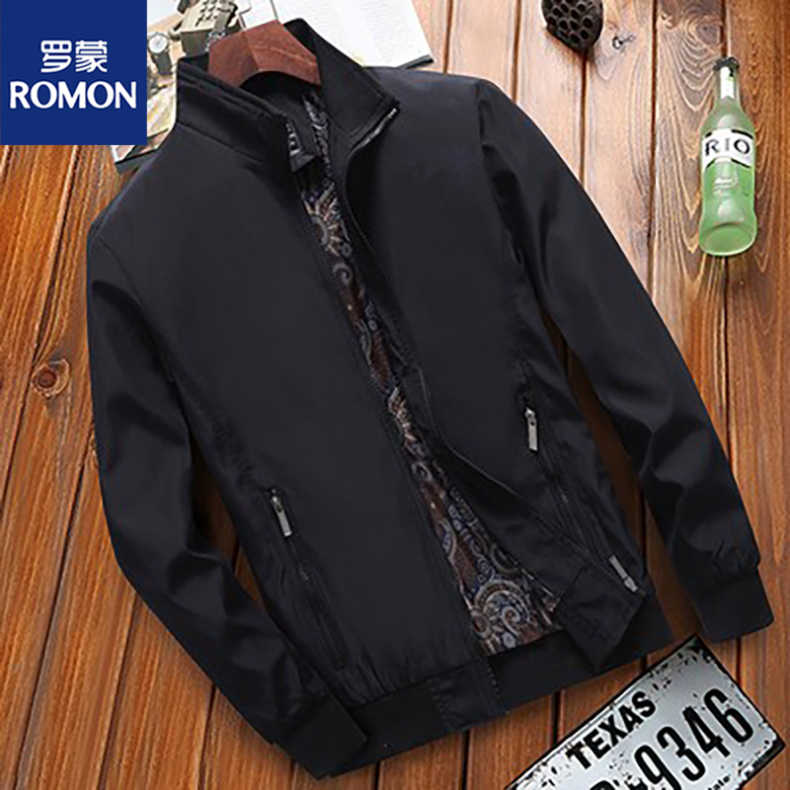 罗蒙 夹克 男士 外套 春秋 款大码 宽松 立领 上衣 冬季 加厚 中年 父亲 爸爸 装