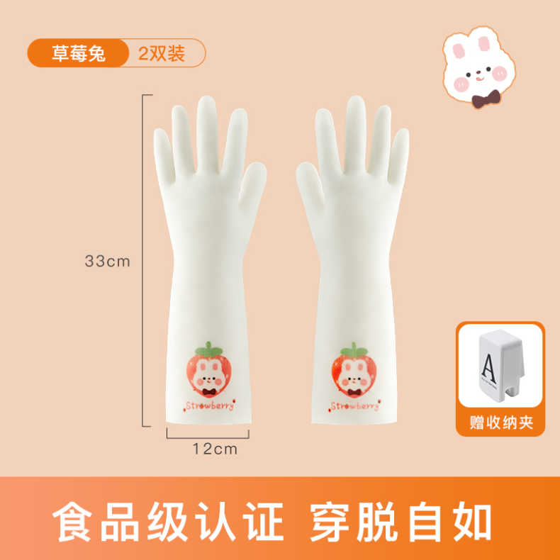 冬季 加绒 耐用 型 丁腈橡胶 手套 女 家务 清洁 家用 厨房 洗碗 洗衣服 防水